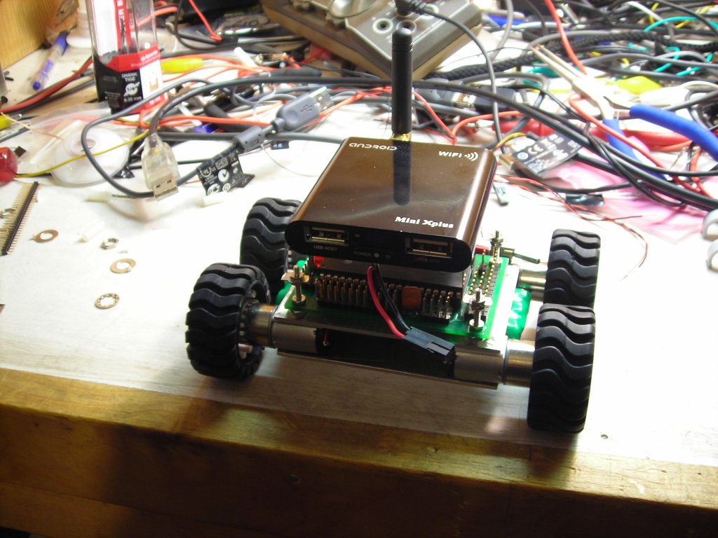 Mini Robotic exploration platform System Mini XPlus - Allwinner A10, 1.0 GHZ - $80 512 Megs of Ram Wifi Cameras 1x Microsoft Lifecam HD - $50 Batteries 2x 3 cell 600mah NiMH - $16 Chassis 4x 6v Gear Motors - Sparkfun ROB-08912 - $48 4x Wheel - Sparkfun ROB-08899 - $28 1x Motor Controller - Pololu Qik 2s9v1 - $25 Misc 1x Aluminum Sheet - $12 Tape, Wiring, Connectors, Switches, etc $15 Total: $274 I hope to get the total price down with better part selection. Source code Video